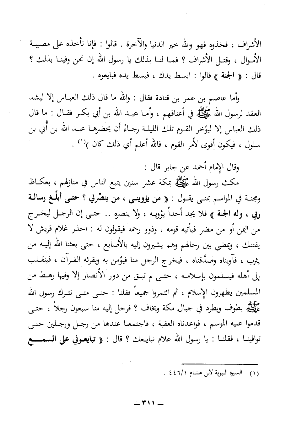 (¬1) السيرة النبوية لابن هشام 1/ 446.