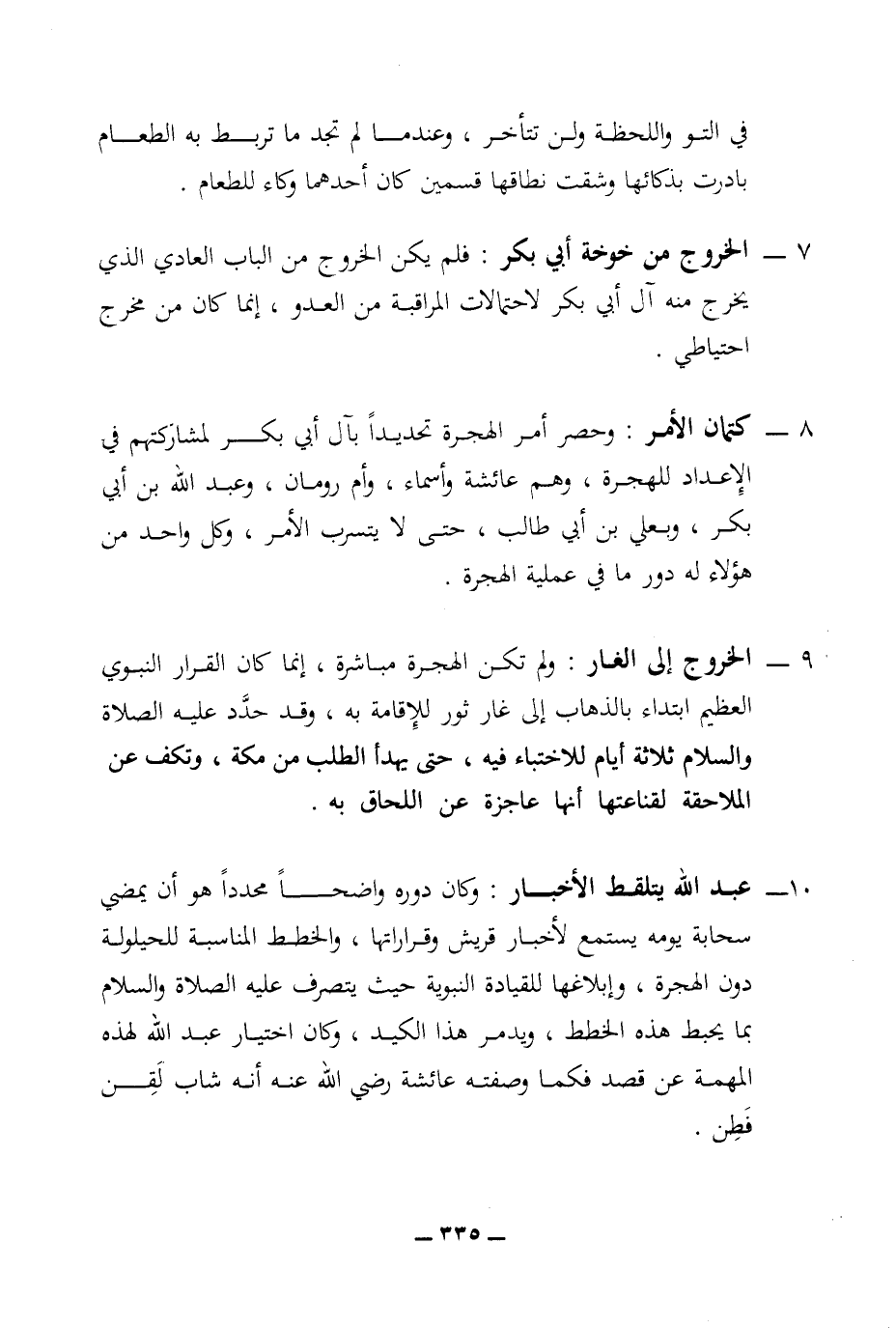 7 - الخروج من خوخة أبي بكر: فلم يكن الخروج من الباب العادي الذي يخرج منه آل أبي بكر لاحتمالات المراقبة من العدو، إنما كان من مخرج احتياطي.