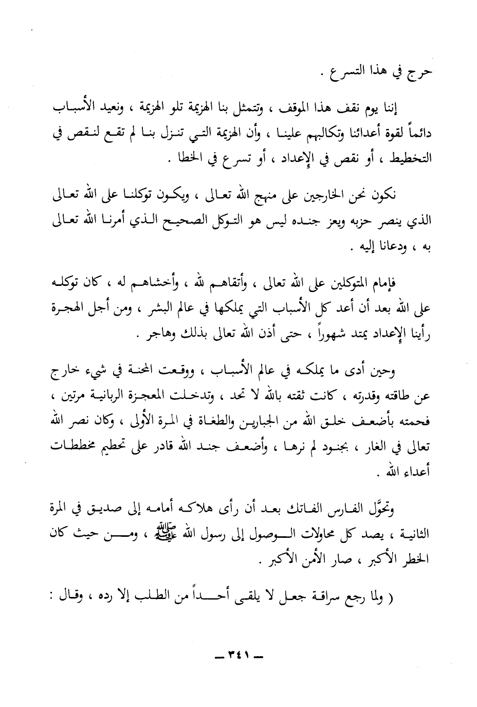 إننا يوم نقف هذا الموقف، وتتمثل بنا الهزيمة تلو الهزيمة، ونعيد الأسباب دائما لقوة أعدائنا وتكالبهم علينا، وأن الهزيمة التي تنزل بنا لم تقع لنقص في التخطيط، أو نقص في الإعداد، أو تسرع في الخطا.
