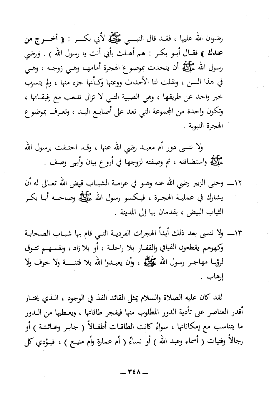 13 - ولا ننسى بعد ذلك أبدا الهجرات الفردية التي قام بها شباب الصحابة وكهولهم يقطعون الفيافي والقفار بلا راحلة، أو بلا زاد، ونفسهم تتوق لرؤيا مهاجر رسول الله (ص)، وأن يعبدوا الله بلا فتنة ولا خوف ولا إرهاب.