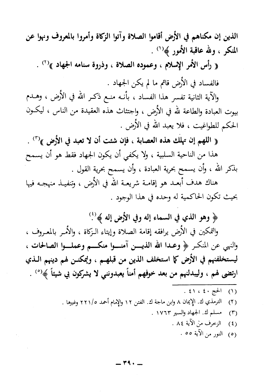 الذين إن مكناهم في الأرض أقاموا الصلاة وآتوا الزكاة وأمروا بالمعروف ونهوا عن المنكر ولله عاقبة الأمور} (¬1).