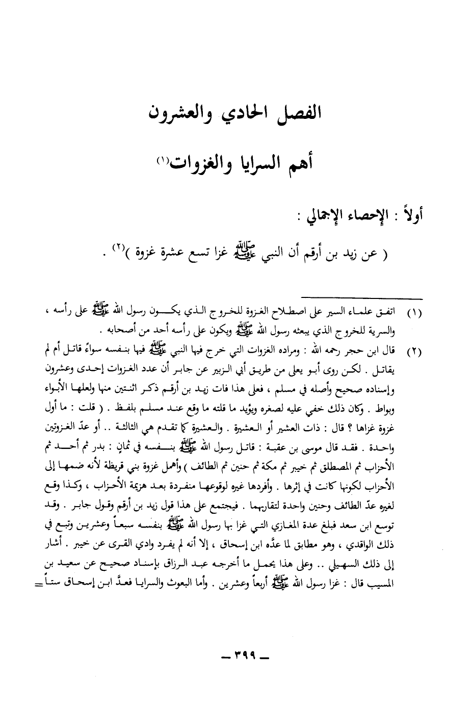 (عن زيد بن أرقم أن النبي (ص) غزا تسع عشر غزوة) (¬2).