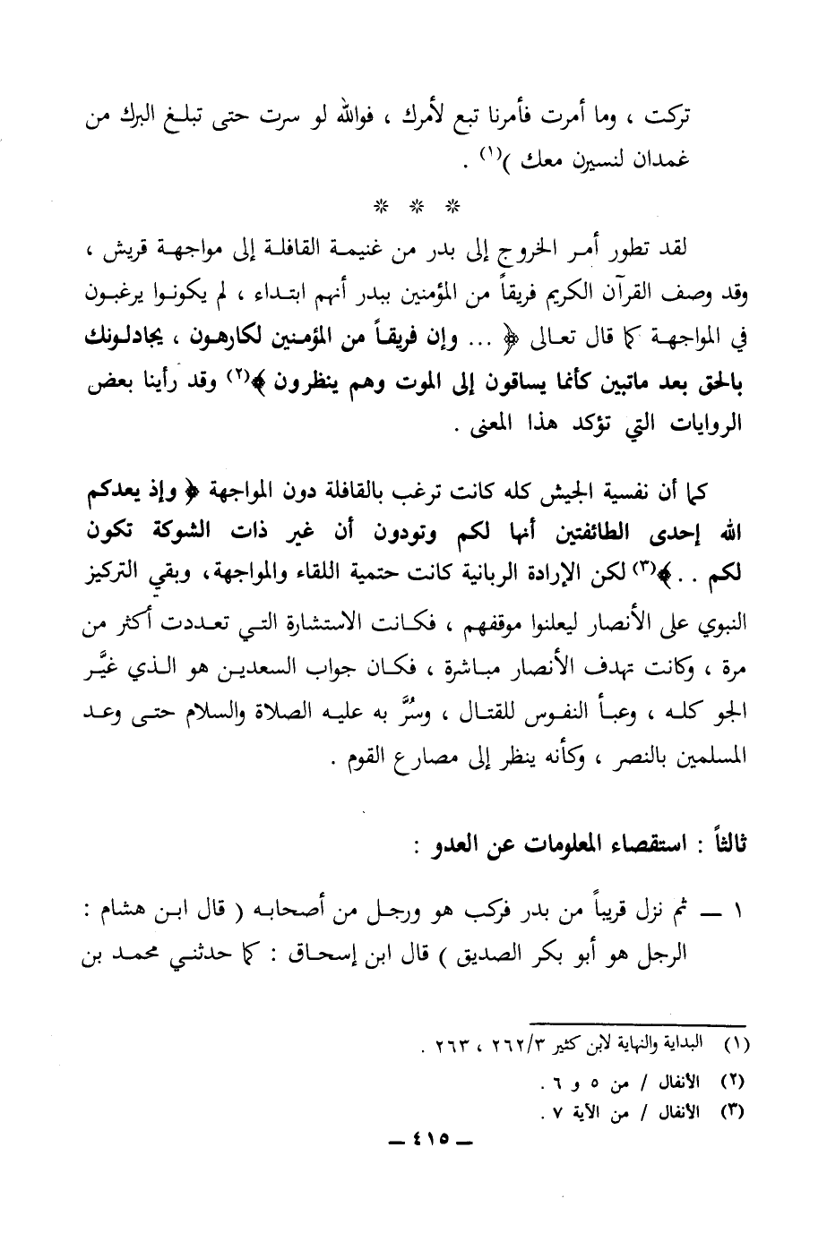 1 - ثم نزل قريبا من بدر فركب هو ورجل من أصحابه (قال ابن هشام: الرجل هو أبو بكر الصديق) قال ابن إسحاق (ص): كما حدثني محمد بن