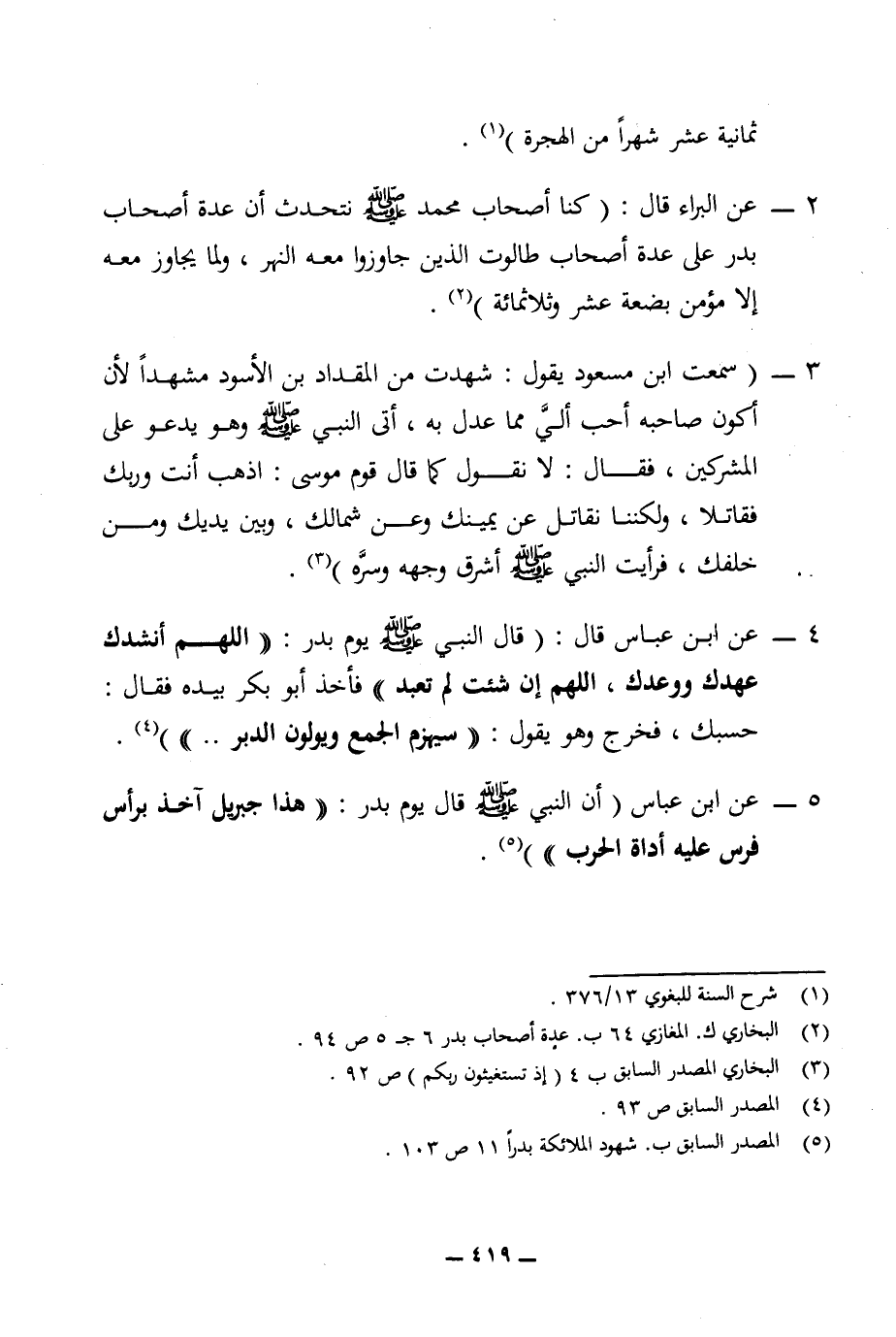(¬5) المصدر السابق ب. شهود الملائكة بدرا 11 ص 103.
