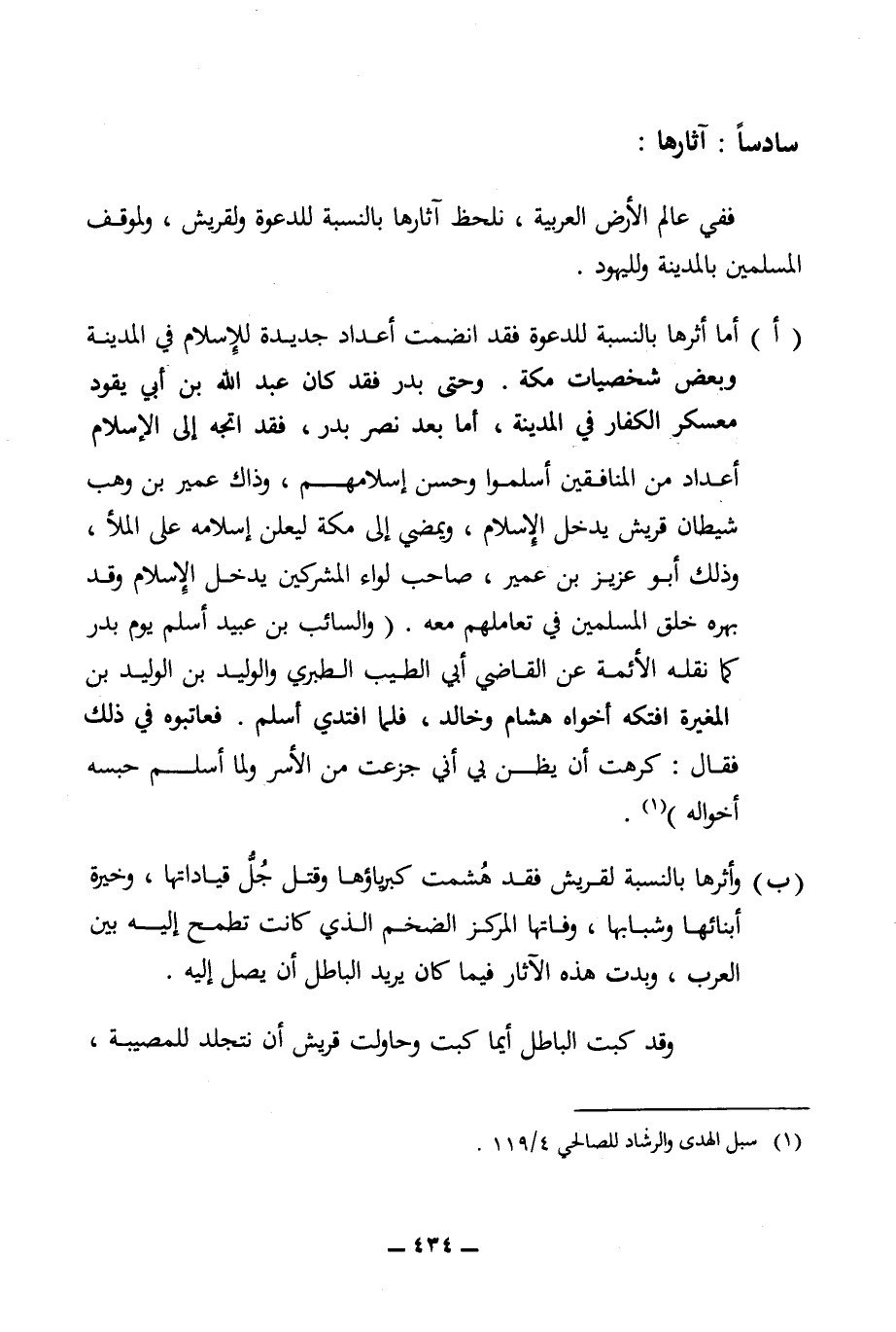 ففي عالم الأرض العربية، نلحظ آثارها بالنسبة للدعوة ولقريش، ولموقف المسلمين بالمدينة ولليهود.