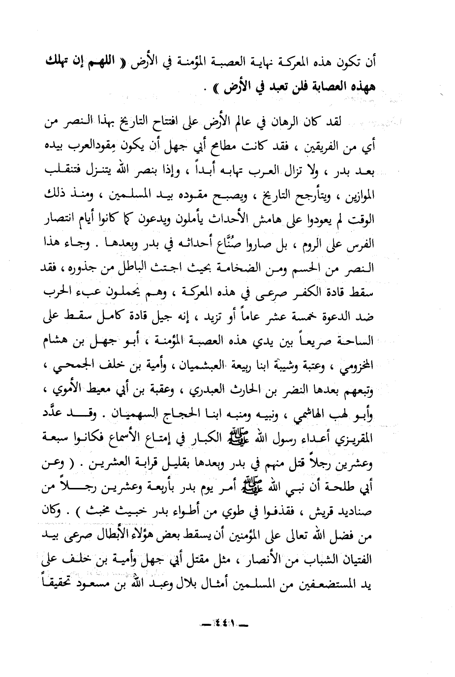 أن تكون هذه المعركة نهاية العصبة المؤمنة في الأرض ((اللهم إن تهلك هذه العصابة فلن تعبد في الأرض)).