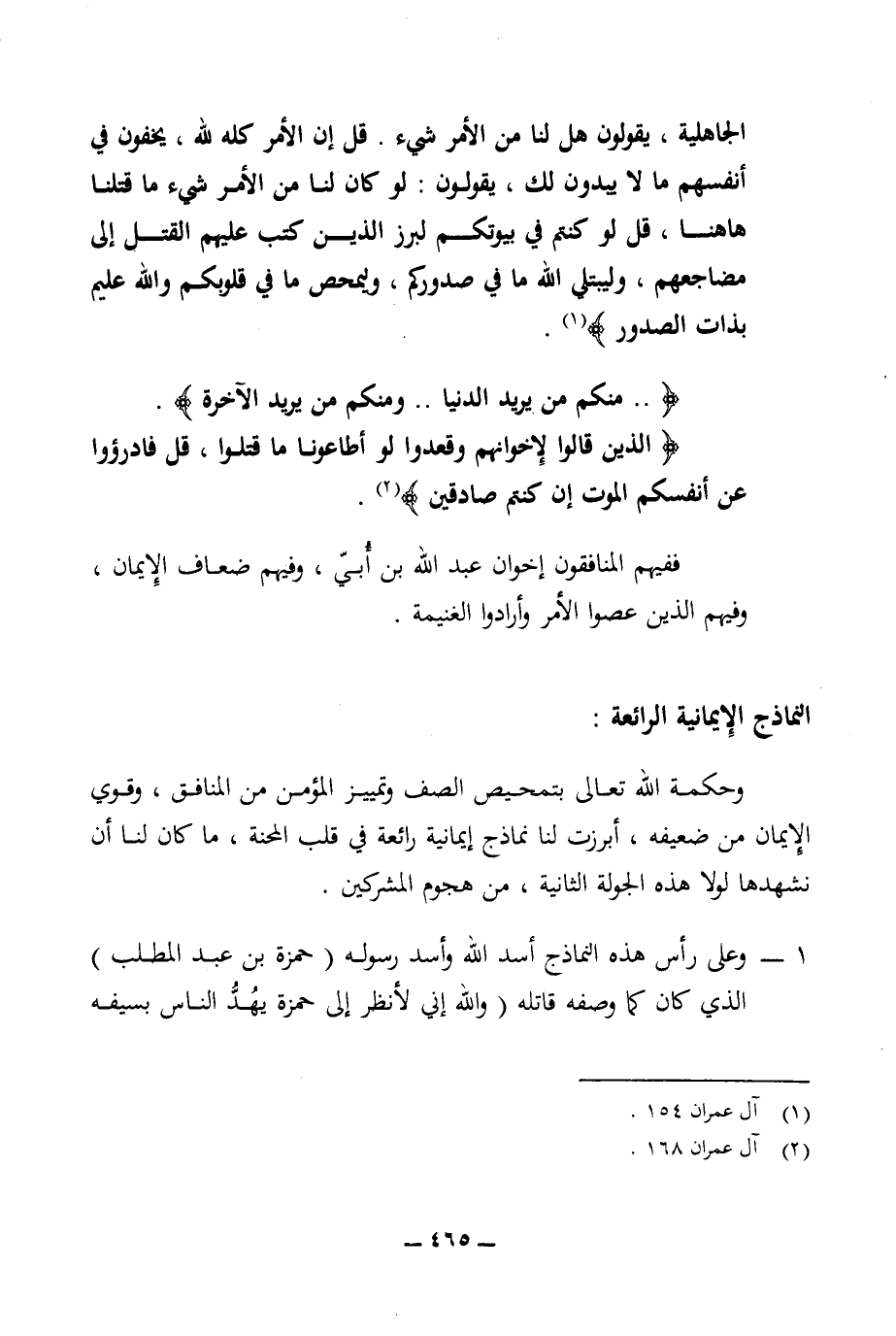 1 - وعلى رأس هذه النماذج أسد الله وأسد رسوله (حمزة بن عبد المطلب) الذي كان كما وصفه قاتله (بالله إني لأنظر إلى حمزة يهد الناس بسيفه