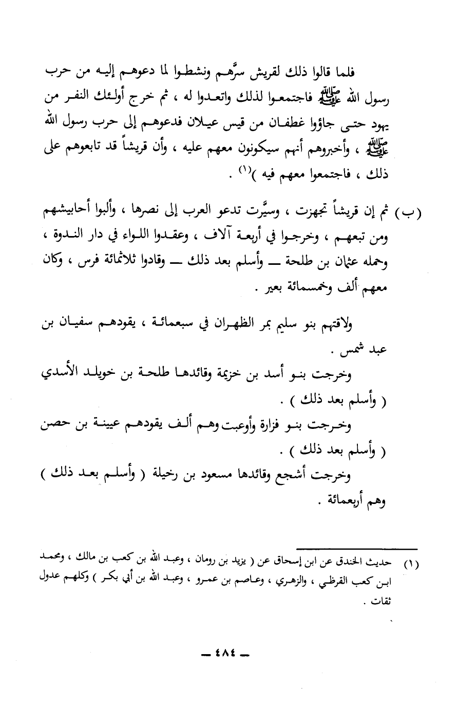 (¬1) حديث الخندق عن ابن إسحاق عن (يزيد بن رومان، وعبد الله بن كعب بن مالك، ومحمد ابن كعب القرظي، والزهري، وعاصم بن عمرو، وعبد الله بن أبي بكر) وكلهم عدول ثقات.