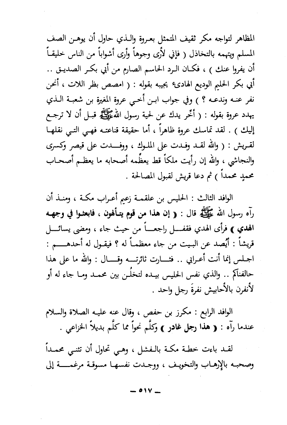 الوافد الرابع: مكرز بن حفص، وقال عنه عليه الصلاة والسلام عندما رآه: ((هذا رجل غادر)) وكلم نحوا مما كلم بديلا الخزاعي.