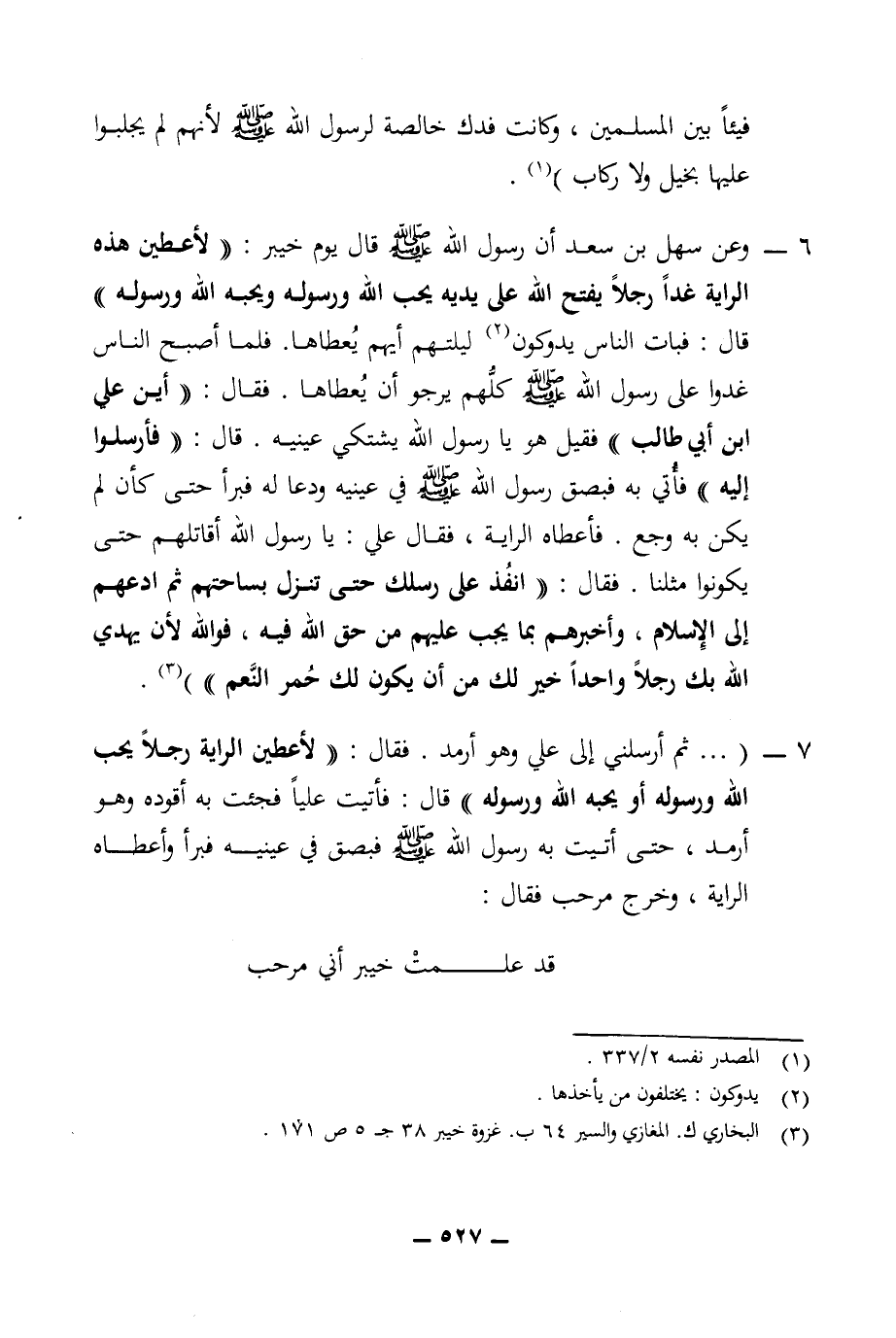 (¬3) البخاري ك. المغاني والسير 64 ب. غزوة خيبر 38 ج 5 ص 171.