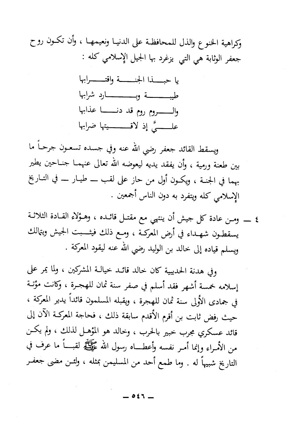 وكراهية الخنوع والذل للمحافظة على الدنيا ونعيمها، وأن تكون روح جعفر الوثابة هي التي يزغرد بها الجيل الإسلامي كله: