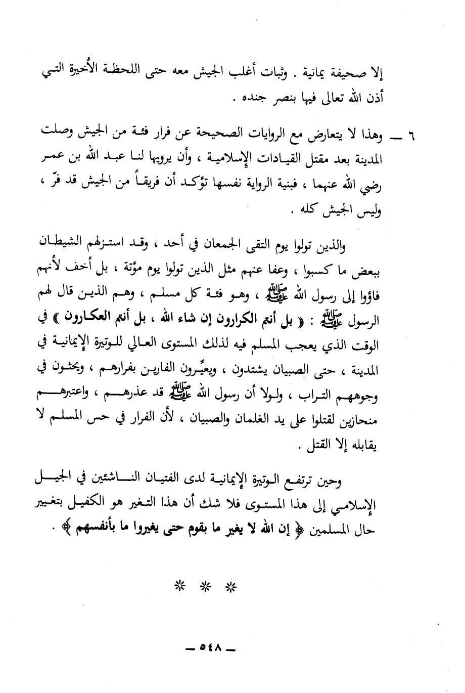 6 - وهذا لا يتعارض مع الروايات الصحيحة عن فرار فئة من الجيش وصلت المدينة بعد مقتل القيادات الإسلامية، وأن يرويها لنا عبد الله بن عمر رضي الله عنهما، فبنية الرواية نفسها تؤكد أن فريقا من الجيش قد فر، وليس الجيش كله.