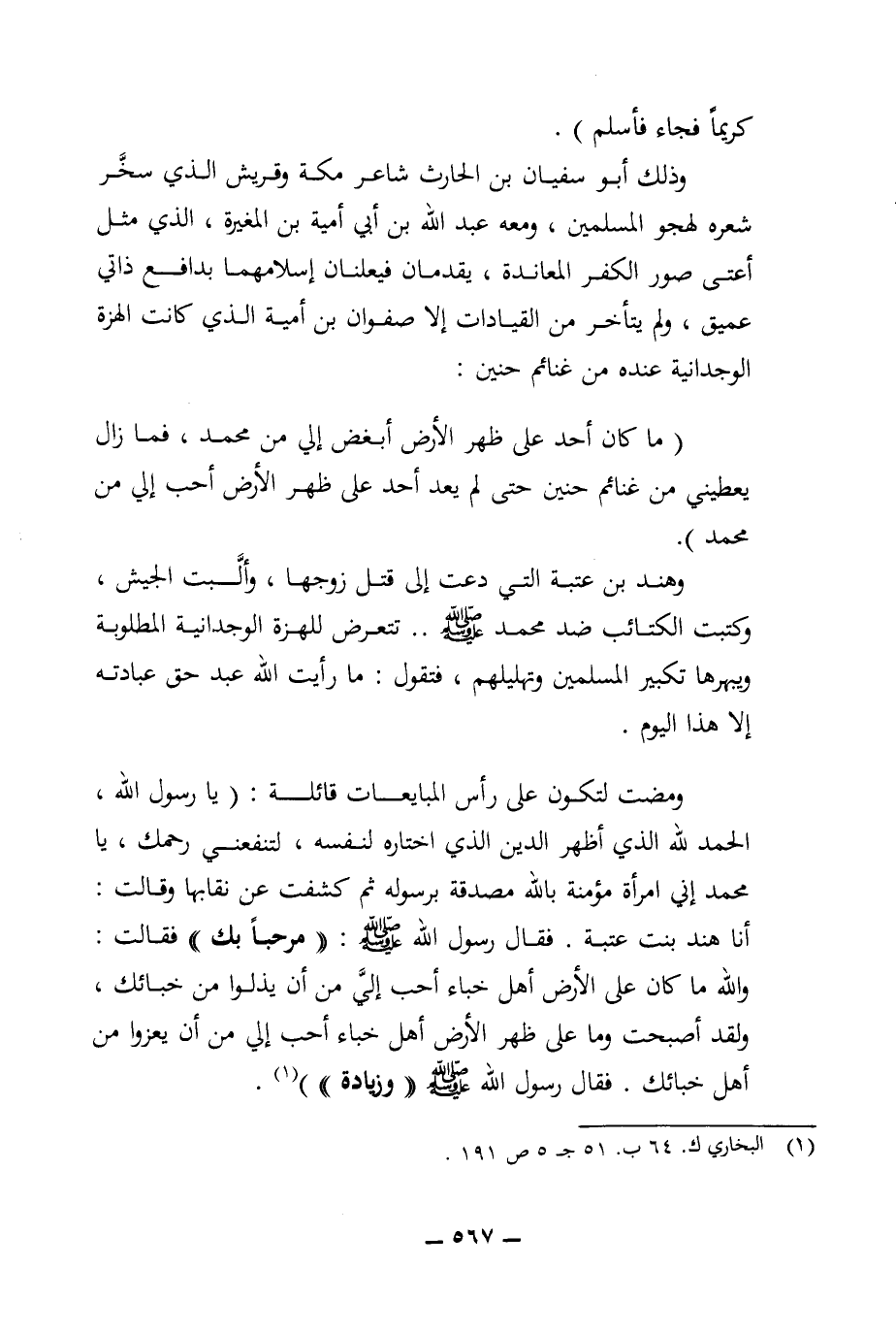 (ما كان أحد على ظهر الأرض أبغض إلي من محمد، فما زال يعطيني من غنائم حنين حتى لم يعد أحد على ظهر الأرض أحب إلي من محمد).
