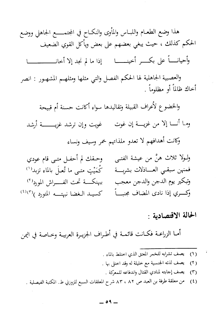 هذا وضع الطعام واللباس والمأوى والنكاح في المجتمع الجاهلي ووضع الحكم كذلك، حيث يبغي بعضهم على بعض ويأكل القوي الضعيف