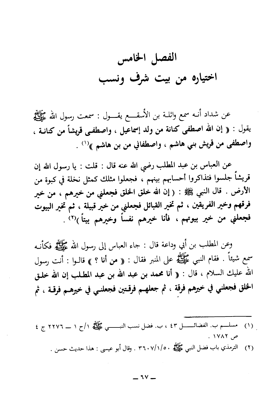 (¬1) مسلم ب. الفضائل 43، ب. فضل نسب النبي - صلى الله عليه وسلم - 1/ ح 1 - 2276 ج 4 ص 1782.