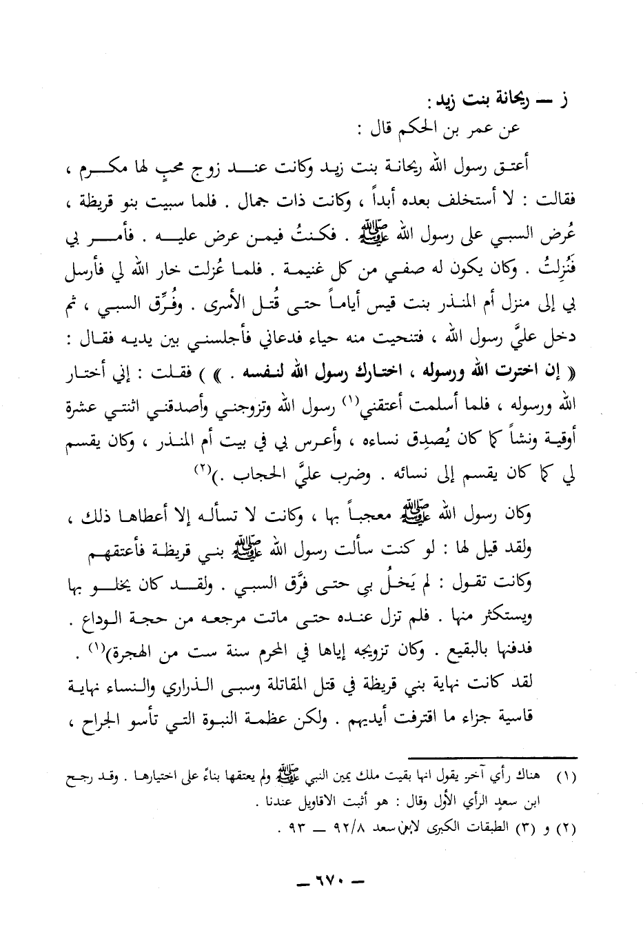 (¬1) هناك رأي آخر يقول أنها بقيت ملك يمين النبي (ص) ولم يعتقها بناء على اختارها. وقد رجح ابن سعد الرأي الأول وقال: هو أثبت الأقاويل عندنا.