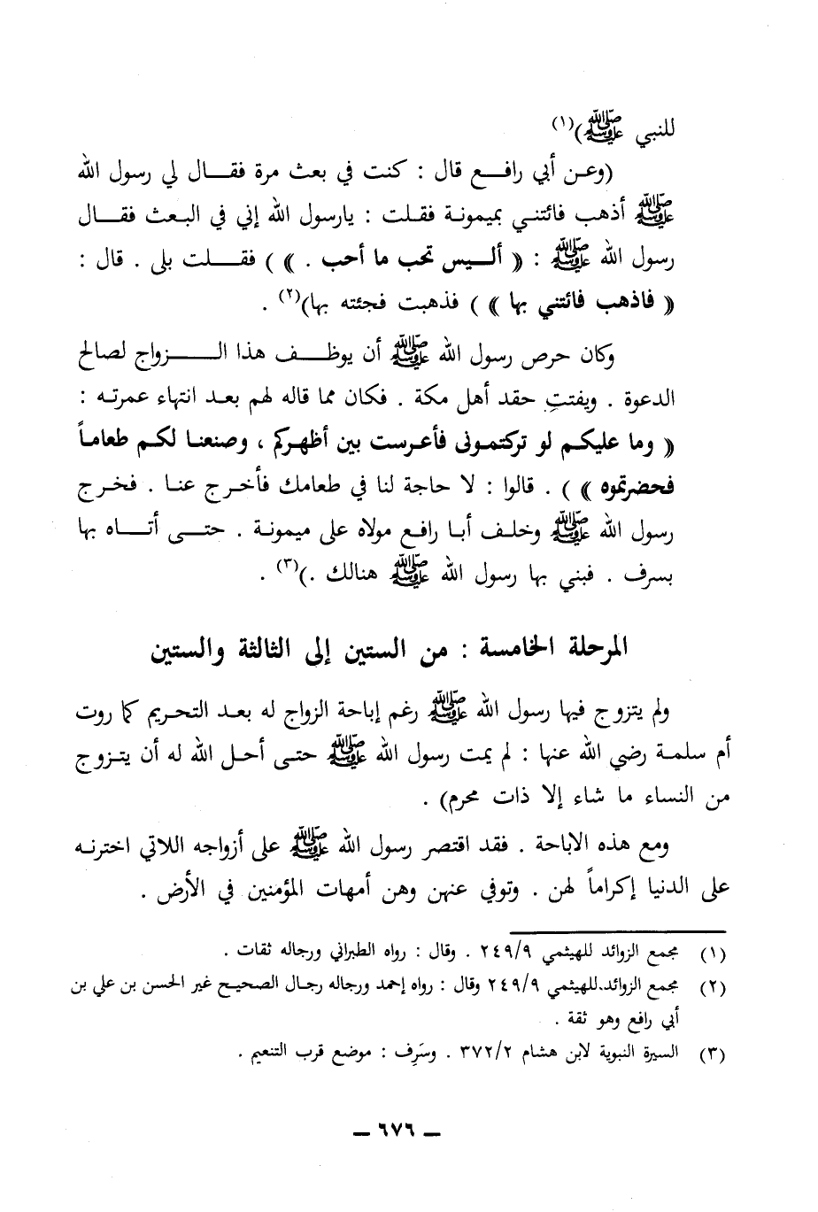 (وعن أبي رافع قال: كنت في بعث مرة فقال لي رسول الله (ص) أذهب فائتني بميمونة فقلت: يا رسول الله إني في البعث فقال رسول الله (ص): ((أليس تحب ما أحب.))) فقلت بلى. قال: ((فاذهب فائتني))) فذهبت فجئته بها) (¬2).
