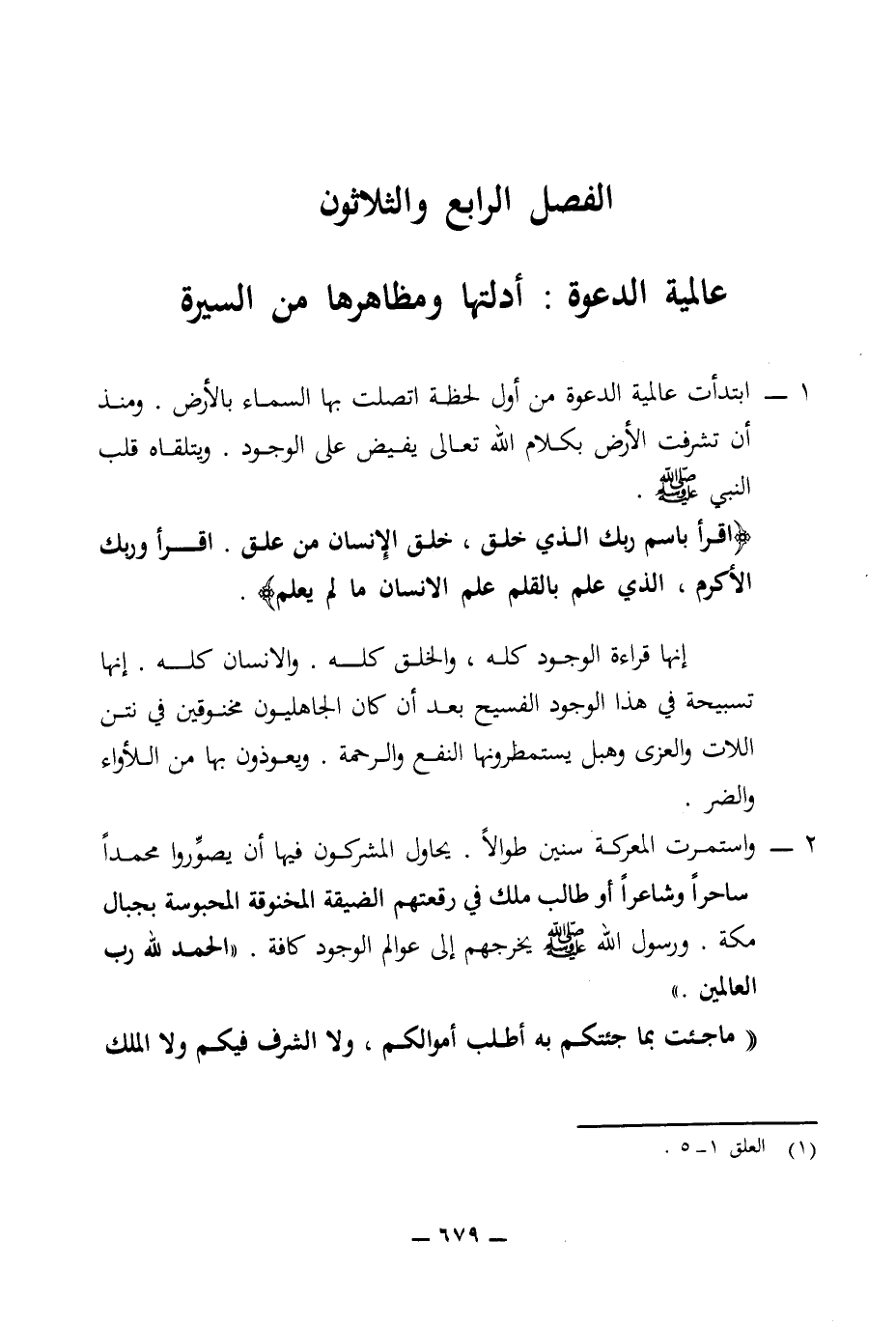 1 - ابتدأت عالمية الدعوة من أول لحظة اتصلت بها السماء بالأرض. ومنذ أن تشرفت الأرض بكلام الله تعالى يفيض على الوجود. ويتلقاه قلب النبي (ص).