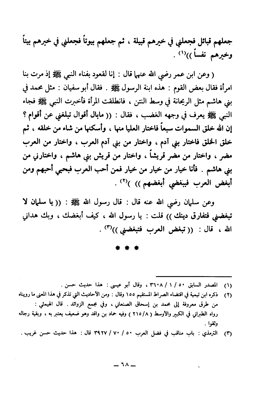 (¬3) الترمذي: باب مناقب في فضل العرب 50/ 70/ 3927 قال: هذا حديث حسن غريب.
