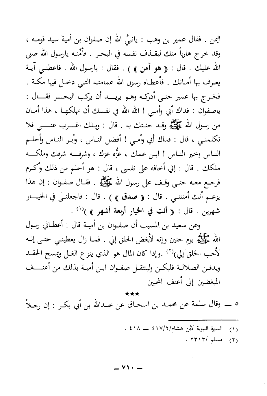 وعن سعيد بن المسيب أن صفوان بن أمية قال: أعطاني رسول الله (ص) يوم حنين وإنه لأبغض الخلق إلي. فما فما زال يعطيني حتى إنه لأحب الخلق إلي) (¬2). وإذا كان المال هو الذي ينزع الغل ويمسح الحقد ويدفن الضلالة فليكن ولينتقل صفوان ابن أمية بذلك من أعنف المبغضين إلى أعنف المحبين.