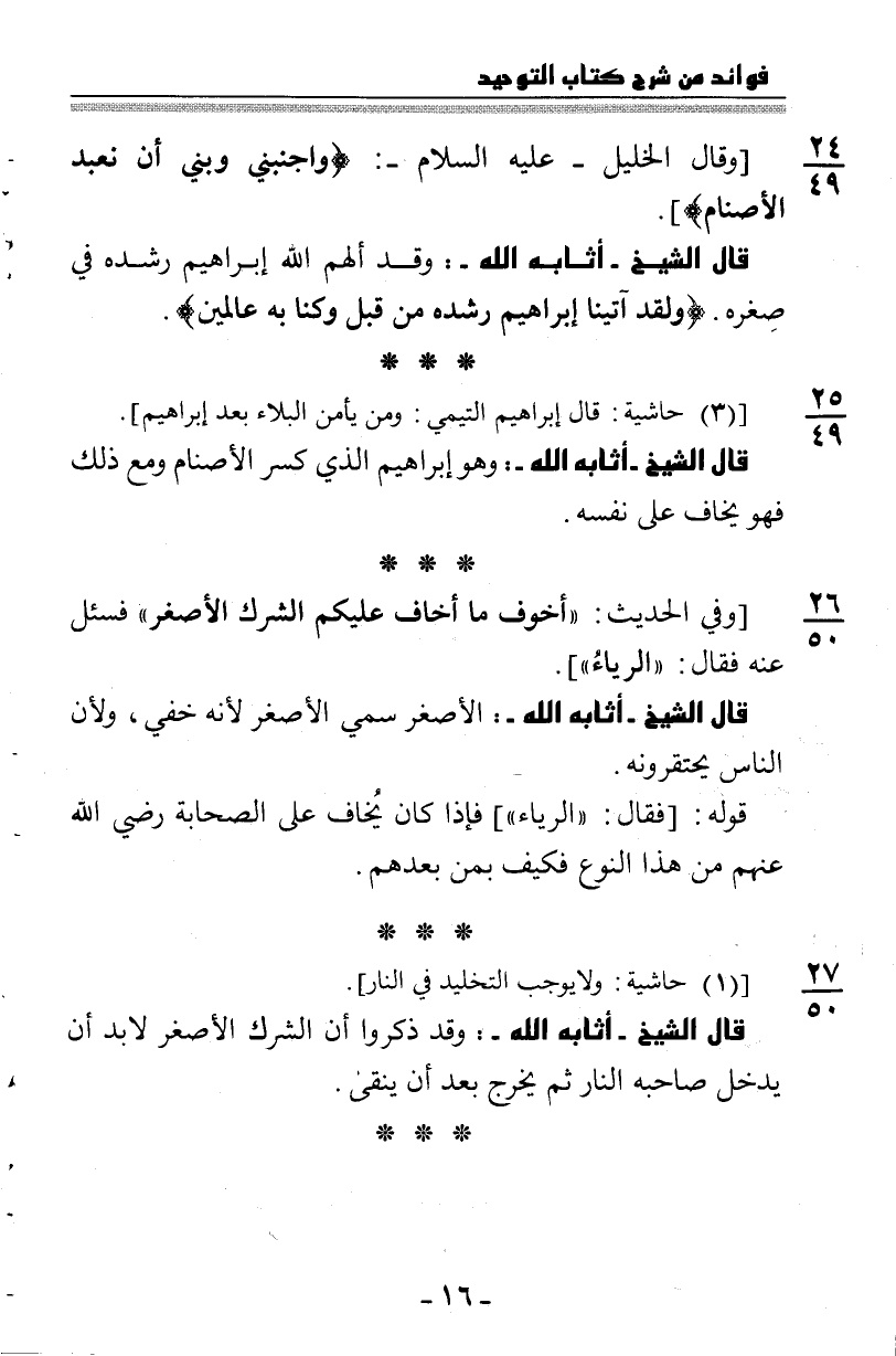 24: 49 [وقال الخليل عليه السلام: {وَاجْنُبْنِي وَبَنِيَّ أَن نَّعْبُدَ الأَصْنَامَ} [إبراهيم: 35] .