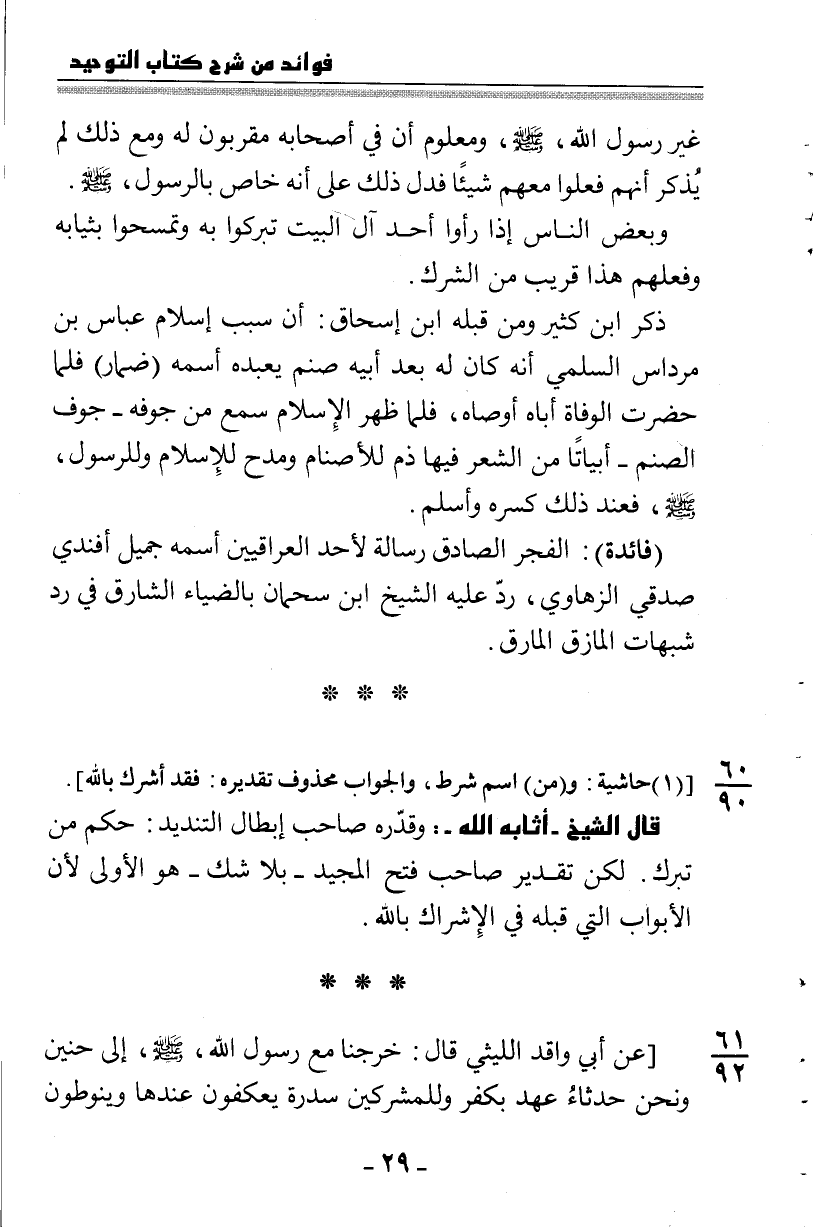 "فائدة": الفجر الصادق رسالة لأحد العراقيين اسمه جميل أفندي صدقي الزهاوي، ردّ عليه الشيخ ابن سحمان بالضياء الشارق في رد شبهات المازق المارق.