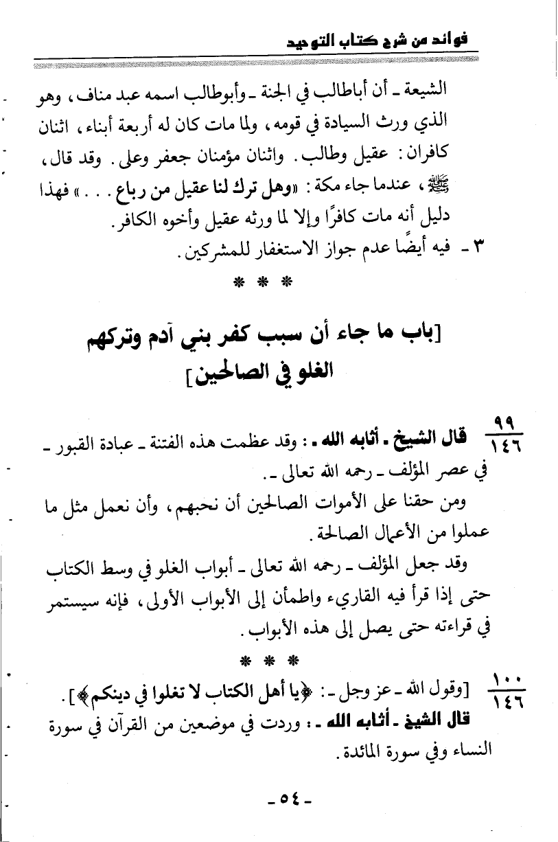 100: 146 [وقول الله عز وجل: {يَا أَهْلَ الْكِتَابِ لاَ تَغْلُواْ فِي دِينِكُمْ} [النساء: 171] .