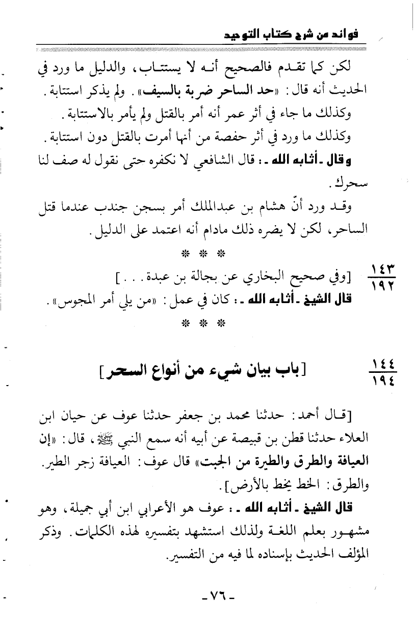 144: 194 [باب بيان شيء من أنواع السحر]