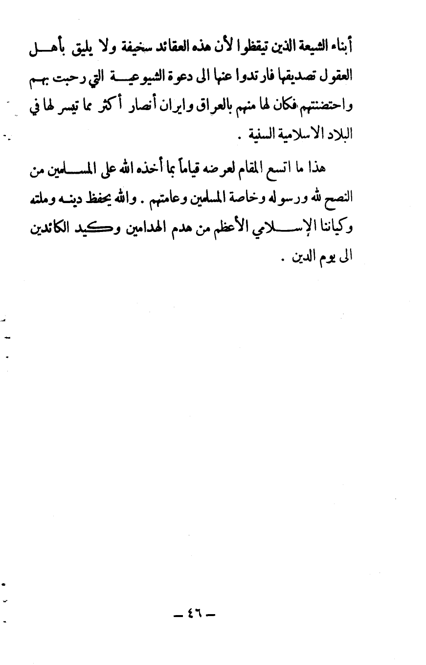 هذا ما اتسع المقام لعرضه؛ قياماً بما أخذه الله على المسلمين من النصح لله، ورسوله، وخاصة المسلمين وعامتهم والله يحفظ دينه وملته وكياننا الإسلامي الأعظم من هدم الهدامين، وكيد الكائدين إلى يوم الدين.