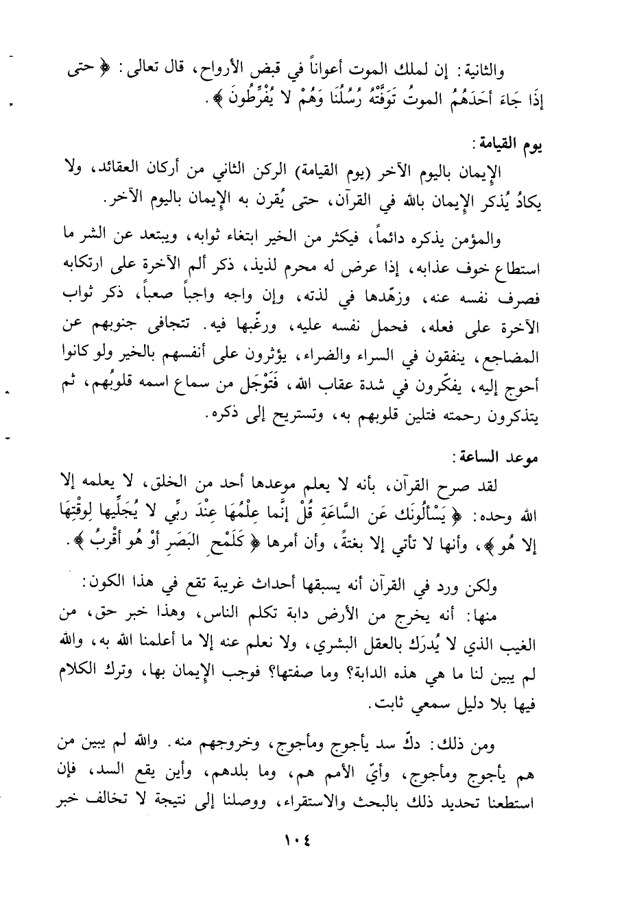 ومن ذلك: دك سد يأجوج ومأجوج، وخروجهم منه، والله لم يبين من هم يأجوج ومأجوج، وأي الامم هم، وما بلدهم، وأين يقع السد، فان استطعنا تحديد ذلك بالبحث والاستقراء، ووصلنا إلى نتيجة لا تخالف خبر
