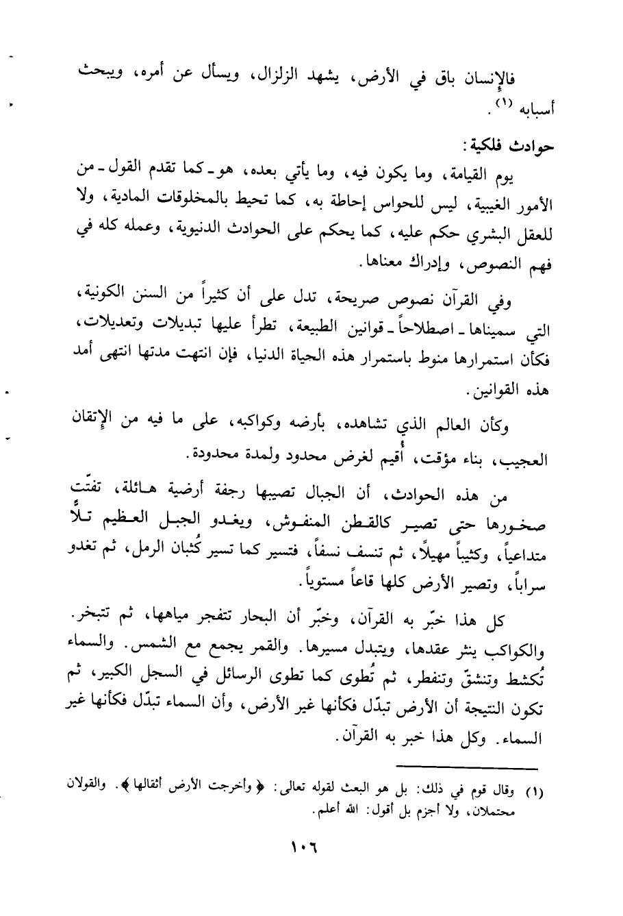 (¬1) وقال قوم في ذلك: بل هو البعث لقوله تعالى: ? وأخرجت الأرض أثقالها ?. والقولان محتملان، ولا أجزم .. بل أقول: "الله أعلم ... ".