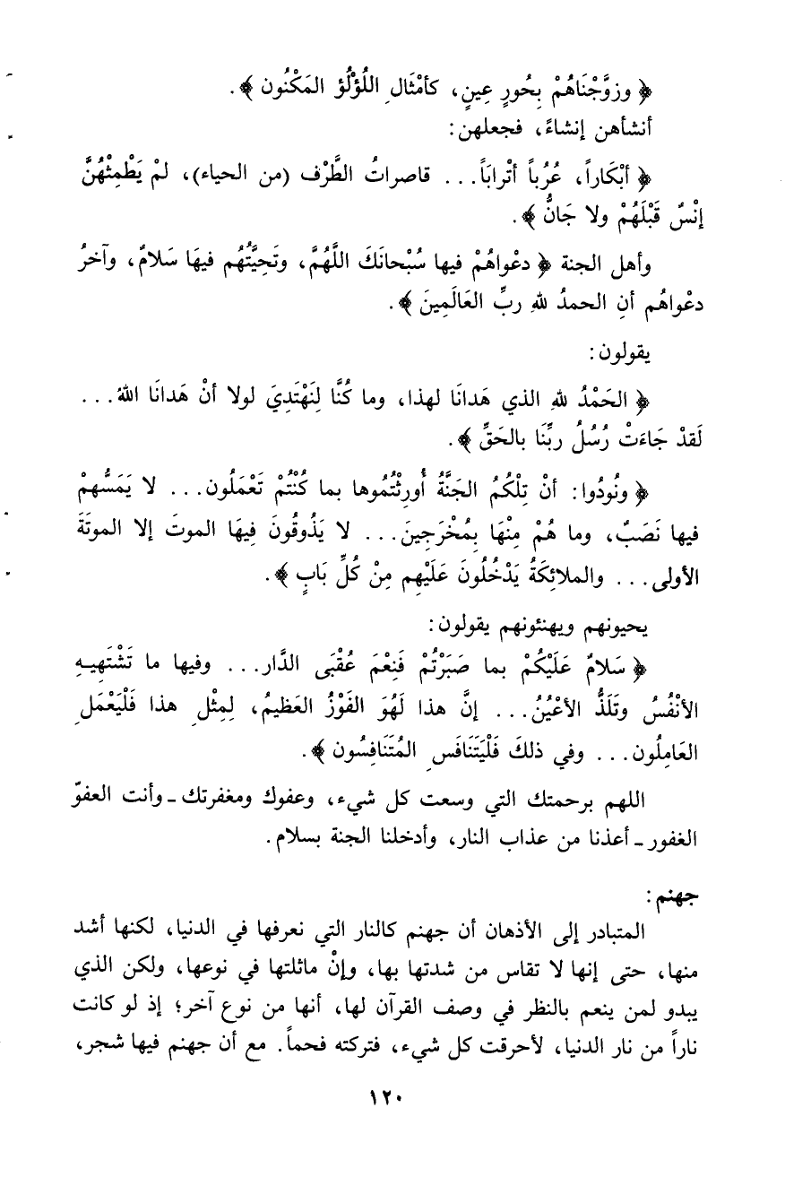 وأهل الجنة. {دعواهم فيها سبحانك اللهم وتحيتهم فيها سلام وآخر دعواهم أن الحمد لله رب العالمين}.