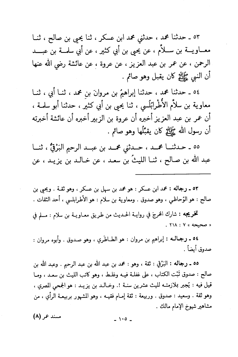 57 - حَدَّثَنَا مُحَمَّدٌ حَدَّثَنَا أَحْمَدُ بْنُ عُمَرَ بْنِ عَبْدِ الرَّحْمَنِ، ثنا عُبَيْدُ اللَّهِ بْنُ مُوسَى، ثنا شَيْبَانُ، عَنْ يَحْيَى بْنِ أَبِي كَثِيرٍ، عَنْ أَبِي سَلَمَةَ بْنِ عَبْدِ الرَّحْمَنِ، عَنْ عُمَرَ بْنِ عَبْدِ الْعَزِيزِ، عَنْ عُرْوَةَ بْنِ الزُّبَيْرِ، عَنْ أَبِي أَيُّوبَ رَضِيَ اللَّهُ عَنْهُ قَالَ: سُئِلَ رَسُولُ اللَّهِ صَلَّى اللهُ عَلَيْهِ وَسَلَّمَ عَنِ الرَّجُلِ يُجَامِعُ أَهْلَهُ فَلَا يُنْزِلُ، قَالَ: «§يَتَوَضَّأُ وُضُوءَهُ لِلصَّلَاةِ، وَيَغْسِلُ مَذَاكِيرَهُ»