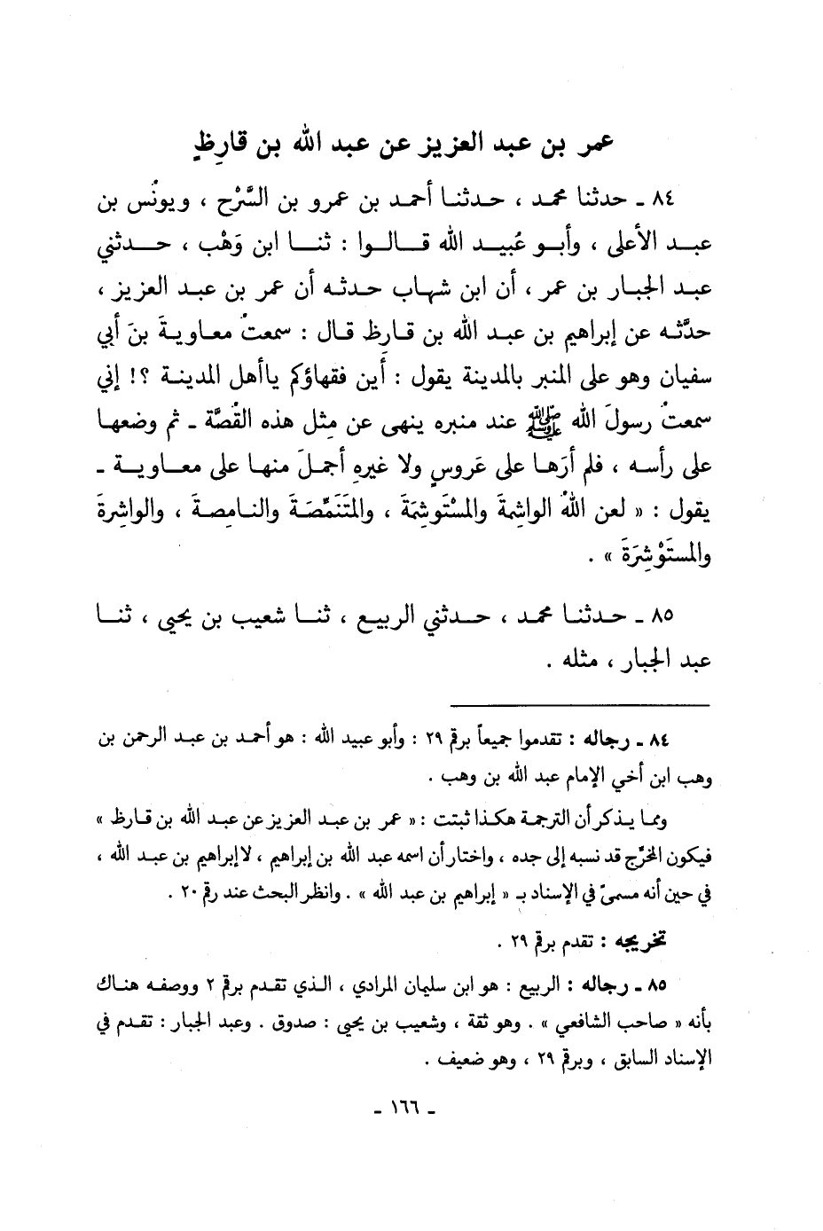 88 - حَدَّثَنَا مُحَمَّدٌ حَدَّثَنِي عَبْدُ اللَّهِ بْنُ أَحْمَدَ الدَّوْرَقِيُّ، ثنا يُونُسُ بْنُ مُوسَى، ثنا الْحَسَنُ بْنُ حَمَّادٍ أَبُو مُحَمَّدٍ الْكُرَيْزِيُّ، ثنا عَبْدُ اللَّهِ بْنُ مُحَمَّدٍ -[171]- الْعَدَوِيُّ، قَالَ: سَمِعْتُ عُمَرَ بْنَ عَبْدِ الْعَزِيزِ يَقُولُ عَلَى الْمِنْبَرِ: حَدَّثَنَا عُبَادَةُ بْنُ عَبْدِ اللَّهِ، عَنْ طَلْحَةَ بْنِ عُبَيْدِ اللَّهِ قَالَ: سَمِعْتُ رَسُولَ اللَّهِ صَلَّى اللهُ عَلَيْهِ وَسَلَّمَ يَقُولُ عَلَى الْمِنْبَرِ: «§أَلَا أَيُّهَا النَّاسُ، تُوبُوا إِلَى رَبِّكُمْ قَبْلَ أَنْ تَمُوتُوا، وَبَادِرُوا بِالْأَعْمَالِ الصَّالِحَةِ قَبْلَ أَنْ تَشْتَغِلُوا، وَصِلُوا الَّذِي بَيْنَكُمْ وَبَيْنَ رَبِّكُمْ عَزَّ وَجَلَّ بِكَثْرَةِ ذِكْرِكُمْ لَهُ، وَكَثْرَةِ الصَّدَقَةِ فِي السِّرِّ وَالْعَلَانِيَةِ؛ تَزْهَدُوا وَتُؤْجَرُوا وَتُنْصَرُوا -[172]-، وَاعْلَمُوا أَنَّ اللَّهَ تَعَالَى فَرَضَ عَلَيْكُمُ الْجُمُعَةَ فِي مَقَامِي هَذَا، فِي يَوْمِي هَذَا، فِي شَهْرِي هَذَا، مِنْ عَامِي هَذَا إِلَى يَوْمِ الْقِيَامَةِ، فَمَنْ تَرَكَهَا فِي حَيَاتِي أَوْ بَعْدَ مَوْتِي وَلَهُ إِمَامٌ فَلَا جَمَعَ اللَّهُ شَمْلَهُ، أَلَا فَلَا بَارَكَ اللَّهُ لَهُ فِي أَمْرِهِ، أَلَا وَلَا بِرَّ لَهُ، أَلَا وَلَا صَوْمَ لَهُ، أَلَا وَلَا صَلَاةَ لَهُ، أَلَا وَلَا تَؤُمُّ امْرَأَةٌ رَجُلًا، وَلَا يَؤُمُّ أَعْرَابِيٌّ مُهَاجِرًا، أَلَا وَلَا يَؤُمُّ فَاجِرٌ مُؤْمِنًا، إِلَّا أَنْ يَقْهَرَهُ سُلْطَانٌ يَخَافُ سَيْفَهُ وَسَوْطَهُ»