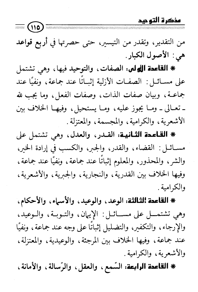 القدرية، الصفاتية، الخوارج، الشيعة ثم يتركب بعضها مع بعض، ويتشعّب عن كل فرقة أصناف، فتصل إلى ثلاث وسبعين فرقة، ولأصحاب كتب المقالات، طريقان في الترتيب.