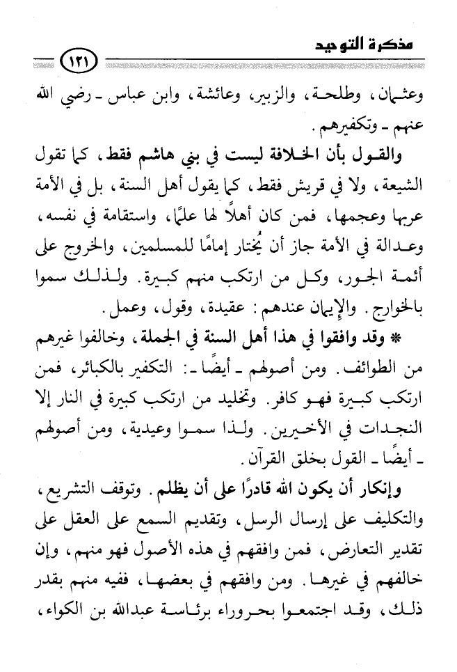 (الفرق وتشعبها) الأزارقة: هم جماعة من الخوارج ينسبون إلى أبي راشد نافع بن الأزرق، خرج آخر أيام يزيد بن معاوية، ومات 65 هـ. وبايع الأزارقة من بعد موته قطري بن الفجاءة، وسموه بأمير المؤمنين، ومن بدعهم تصويب قاتل عليّ عبد الله بن ملجم. وفي ذلك يقول عمران بن حطان مفتي الخوارج:
