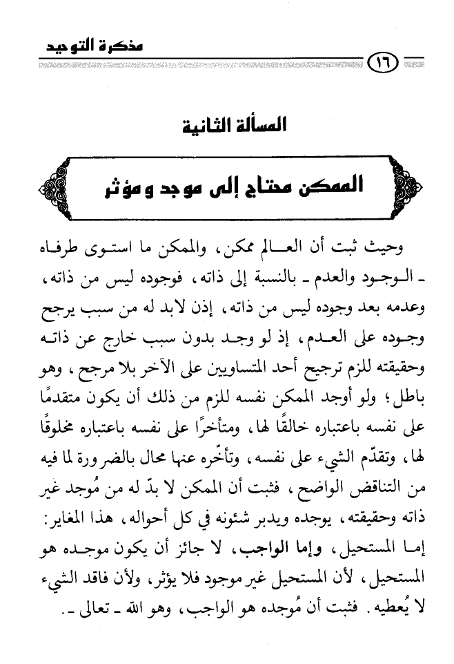 -سبحانه وتعالى- إن لفظ الوجود، ومعناه المطلق، يشترك فيهما كل من الممكن والواجب، والحادث والقديم الأزلي. فالله يُوصف بأنه موجود، والحادث يُقال له- أيضًا-: إنه موجود، ولكن للممكن وجود يخصّه، فإنه حادث سبق وجوده عدم، ويلحقه الفناء، وهو في حاجة دائمة ابتداءً، ودوامًا، إلى من يكسبه، ويعطيه الوجود، بل يحفظه عليه. ولله- تعالى- وجود يخصّه، فهو- سبحانه- واجب الوجود لم يسبق وجوده عدم، ولا يلحقه فناء، ووجوده من ذاته لم يكسبه من غيره.