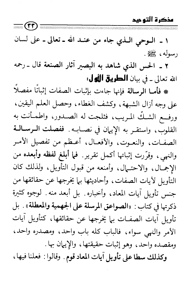 ولهذا يُحرِّم عقلاء الفلاسفة التأويل مع اعتقادهم بصحته؛ لأنه سبب لفساد العالم، وتعطيل للشرائع. ومن تأمًل كيفية ورود آيات الصفات في القرآن والسنة علم قطعًا بطلان تأويلها بما يخرجها عن حقائقها، فإنها وردت على وجه لا يحتمل التأويل بوجه. فانظر إلى قوله- تعالى-: