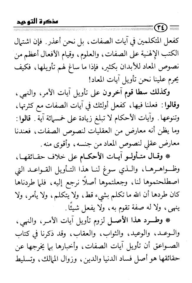 {إِنِّي اصْطَفَيْتُكَ عَلَى النَّاسِ بِرِسَالَاتِي وَبِكَلَامِي} [الأعراف: 144] ففرق بين الرسالة، والكلام. والرسالة إنما هي بكلامه. وكذلك قول النبي صلى الله عليه وسلم: «إنكم ترون ربكم عيانا كما ترون القمر ليلة البدر في الصحو ليس بينه سحاب وكما ترون الشمس في الظهيرة صحوًا ليس دونها سحاب» (¬1) ومعلوم أن هذا البيان، والكشف، والاحتراز ينافي إرادة التأويل قطعًا، ولا يرتاب في هذا من له عقل ودين.