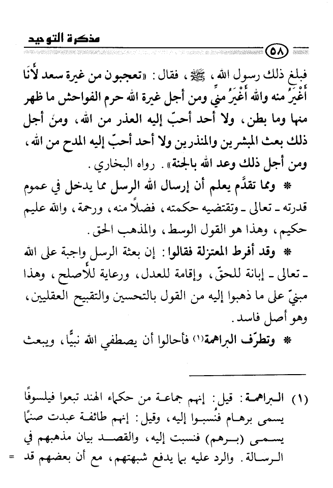 وأما المراد من المعجزة هنا (أي في علم التوحيد) : فهي الأمر الخارق للعادة الخارج عن سنة الله في خلقه، الذي يظهره الله على يد مُدّعي النبوة تصديقًا له في دعواه، وتأييدًا له في رسالته، مقرونًا بالتحدّي لأمته، ومطالبتهم أن يأتوا بمثله، فإذا عجزوا كان ذلك آية من الله- تعالى- على اختياره إيّاه، وإرساله إليهم بشريعته.