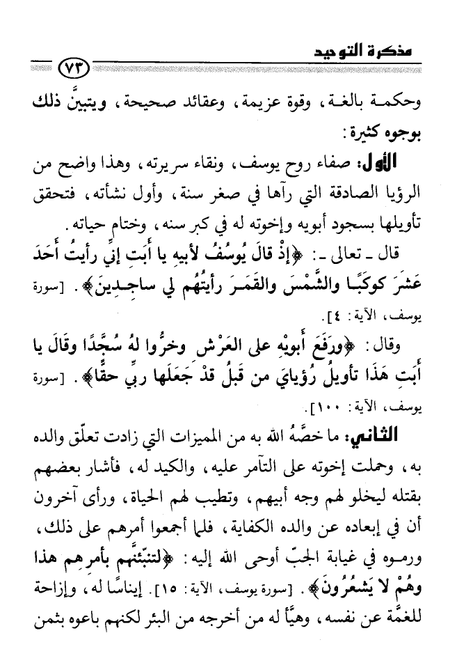الرابع: أنه لم يشغله ما أصيب به من تتابع البلاء عن ربه ودينه، والدعوة إلى ما ورثه من التوحيد الخالص عن آبائه: إبراهيم، وإسحاق، ويعقوب، عليهم السلام، فانتهز حاجة من معه في السجن إليه في تأويل ما رأياه في التعريف بنفسه، فبدأ ببيان مكانته، والحديث عن نفسه، ليُقْبَل منه قوله، ونصح لهما في التوحيد وزيَّنه، وحذرهما من الشرك وقبحه، وأقام على ذلك الحجة، كل ذلك قبل تأويل الرؤيا، ليكون أدعى إلى الإصغاء والقبول، وأبعد عن الإعراض عنه، وقد أطال في ذلك، ثم ختم بتأويل الرؤيا لهما في آية قصيرة.