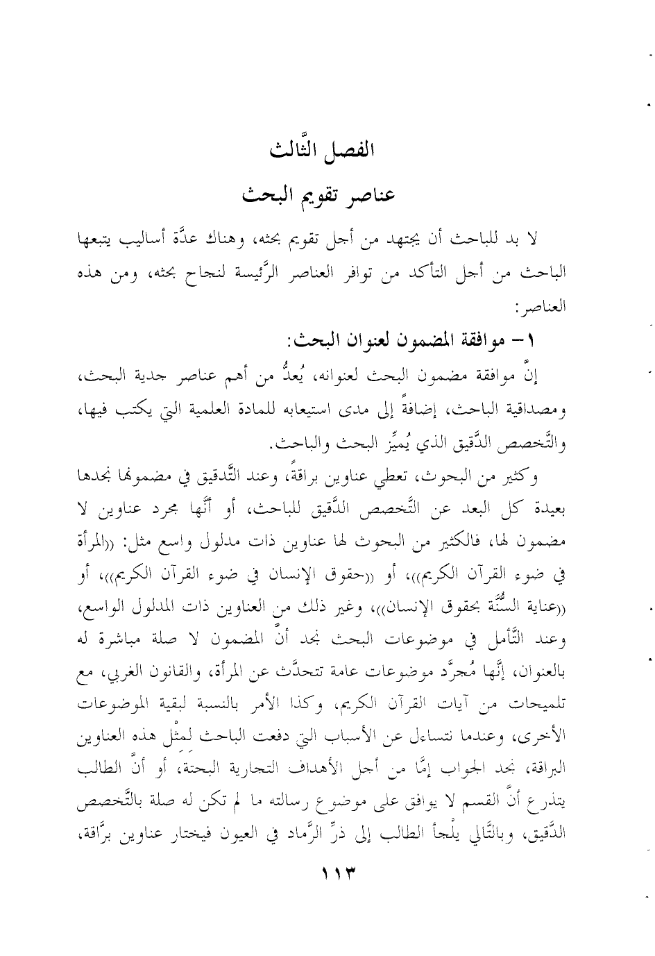 الفصل الثالث عناصر تقويم البحث