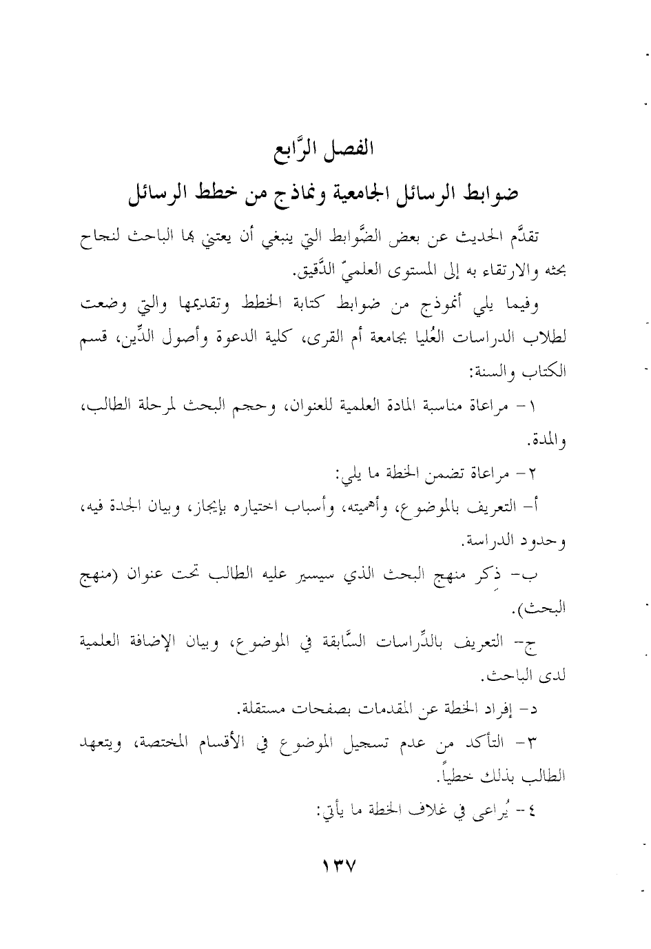 الفصل الرابع ضوابط الرسائل الجامعية ونماذج من خطط الرسائل
