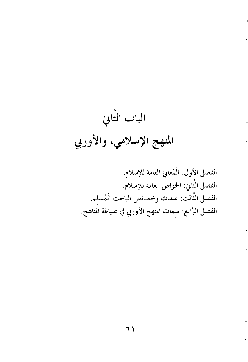 الباب الثاني المنهج الاسلامي والاوربي