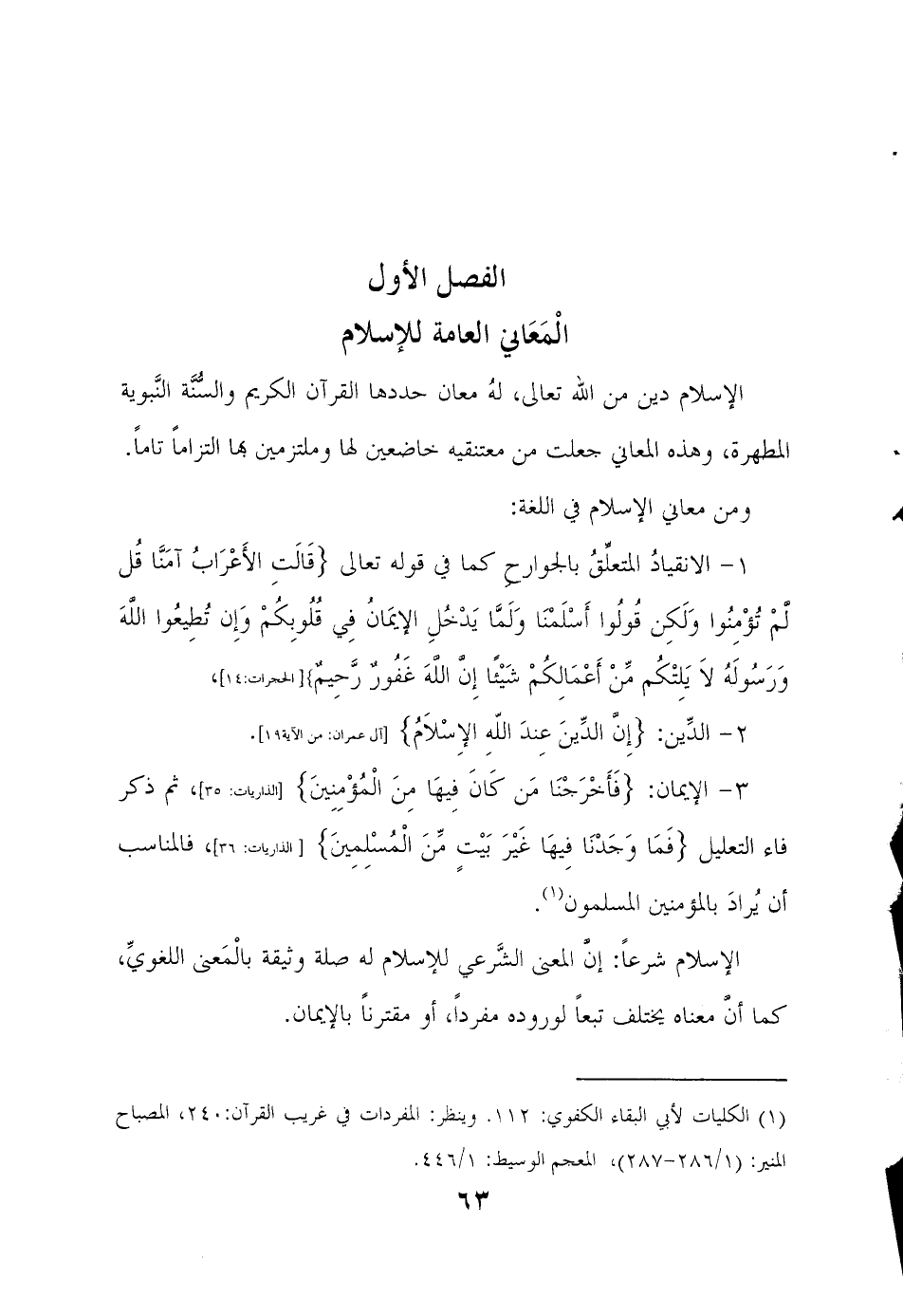 الفصل الاول المعاني العامة للإسلام