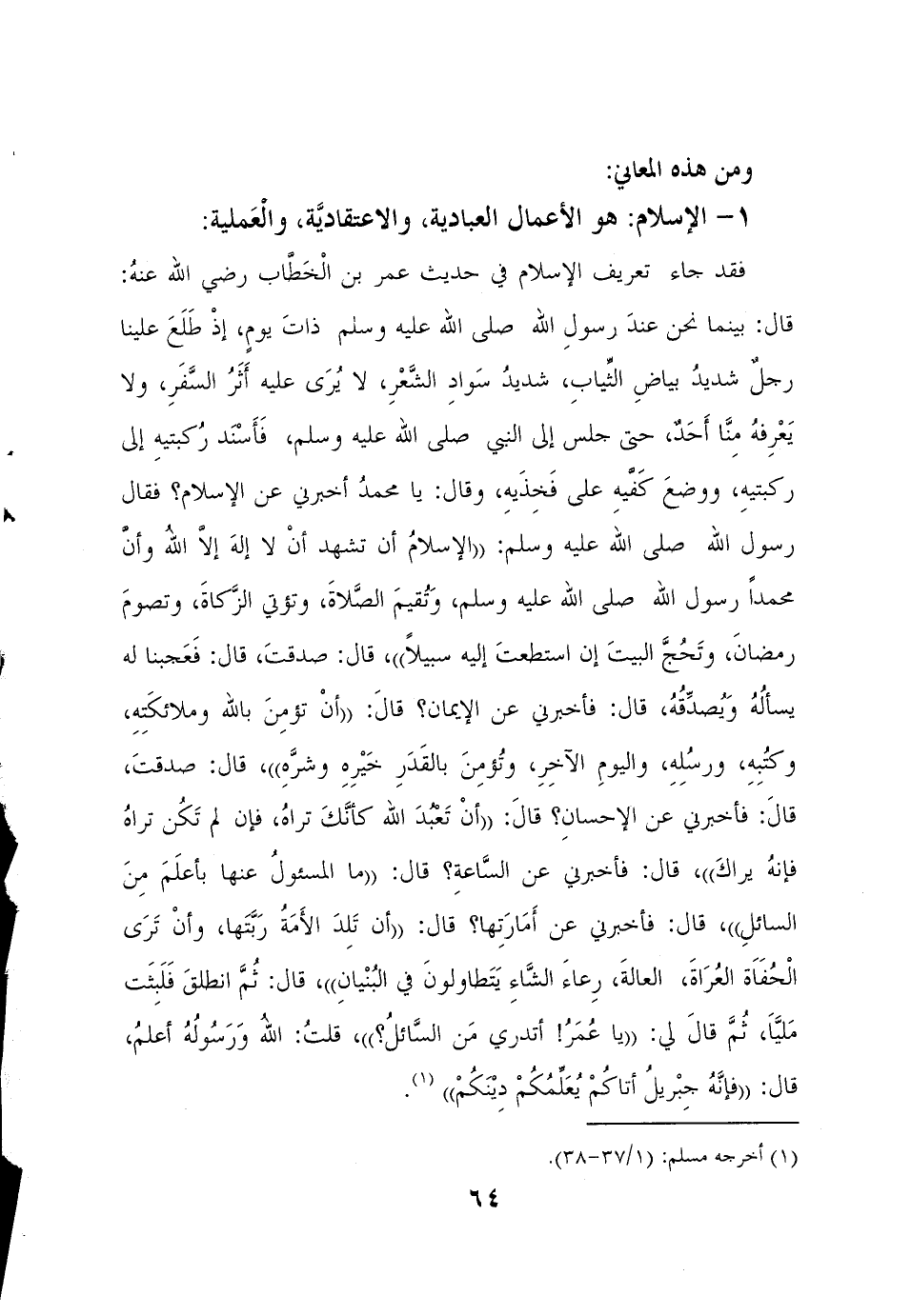 الاسلام هو الاعمال العبادية والاعتقادية والعملية
