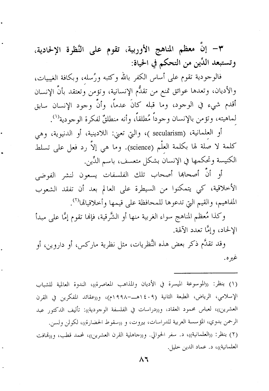 إن معظم المناهج الأوربية تقوم على النظرة الإلحادية وتستبعد الدين من التحكم في الحياة