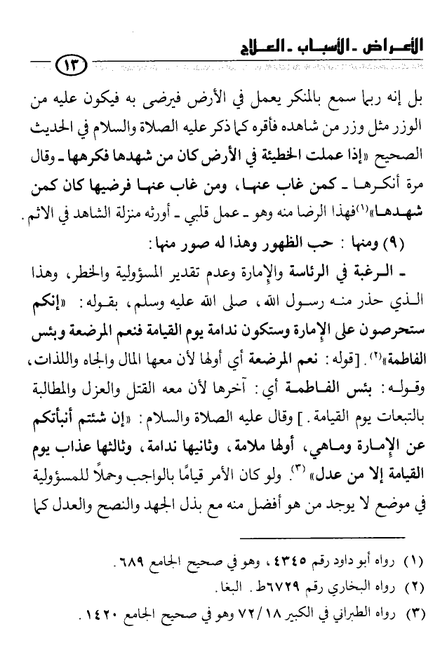 - الرغبة في الرئاسة والإمارة وعدم تقدير المسؤولية والخطر، وهذا الذي حذر منه رسول الله صلى الله عليه وسلم، بقوله: (إنكم ستحرصون على الإمارة وستكون ندامة يوم القيامة فنعم المرضعة وبئس الفاطمة) (قوله: نعم المرضعة أي أولها لأن معها المال والجاه واللذات، وقوله: بئس الفاطمة أي: آخرها لأن معه القتل والعزل والمطالبة بالتبعات يوم القيامة) (¬2)