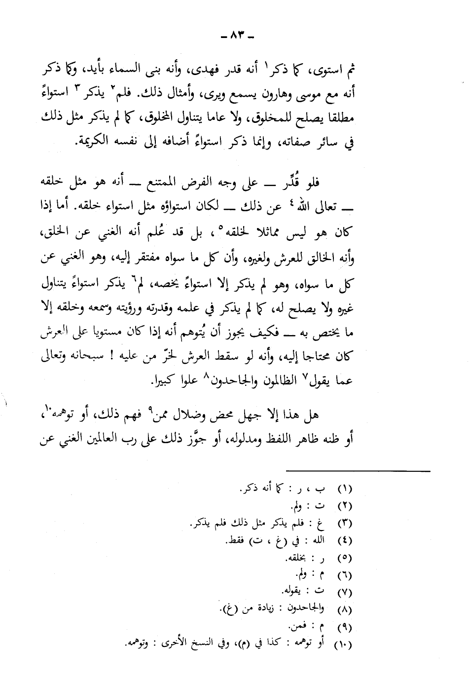 كتاب التدمرية: تحقيق الإثبات للأسماء والصفات وحقيقة الجمع بين القدر والشرع