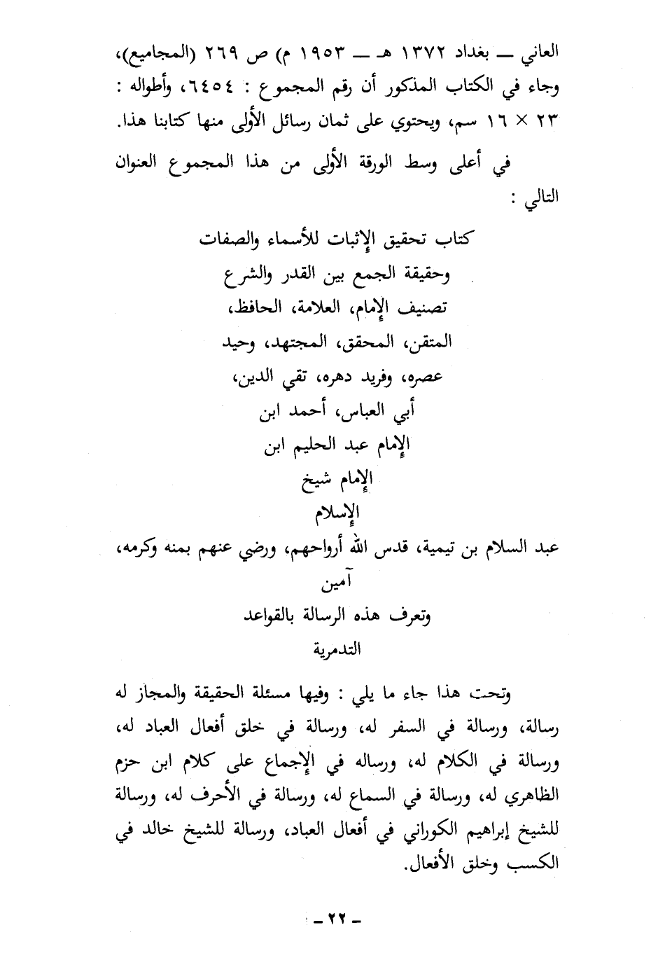 كتاب التدمرية: تحقيق الإثبات للأسماء والصفات وحقيقة الجمع بين القدر والشرع